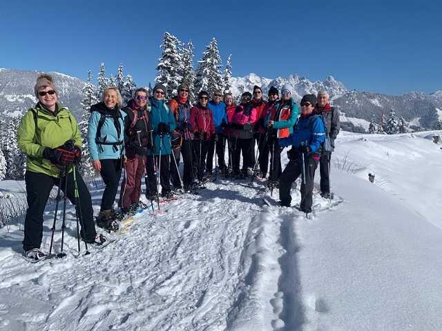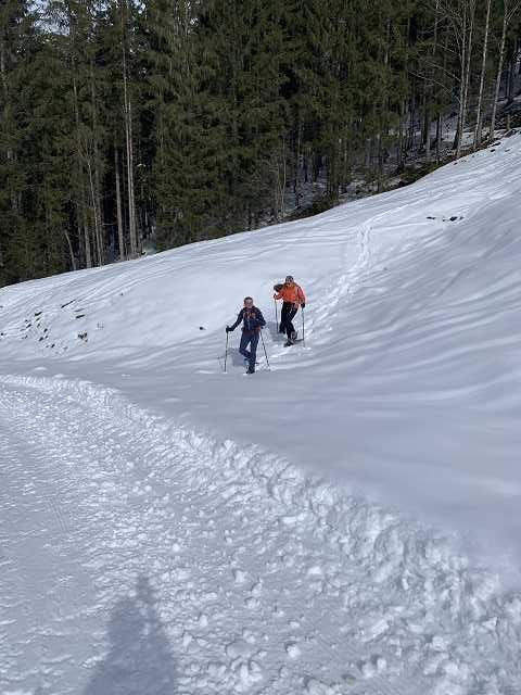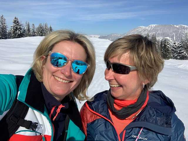 Die liebe Ursula hat als Wanderführerin in diesem Jahr die Gruppe der Schneeschuhwanderer begleitet. Ihre liebevolle Art und ihr selbstgebackenes Apfel-Brot sorgten bei allen für Begeisterung. Mit Voraussicht aller Eventualitäten hat sie sogar ihren Mann auf Bereitschaft gehalten, der als Bergretter im Einsatz war und während seiner Schicht ggf. mit dem Schneemobil ins Tal fahren kann, wenn jemandem die Puste ausging. 😊 Gott sei Dank war sein Dienst nicht nötig und selbst die Wanderer mit Einschränkung waren am Nachmittag sehr stolz, den ganzen Abstieg geschafft zu haben.